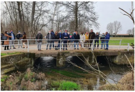 El consejero de Fomento y Medio Ambiente ha visitado hoy la presa del Bernesga, donde la Junta, a través de Somacyl, ha llevado a cabo varias actuaciones de restauración de este histórico y ecológico cauce de más ocho siglos que ha dado servicio de agua de riego a huertas, sembrados y pastos a lo largo de los 39 kilómetros desde su recorrido por los municipios de Cuadros, Sariegos, San Andrés del Rabanedo, León, Onzonilla y Vega de Infanzones. A principios de 2020 se produjeron daños causados por avenidas excepcionales del río Bernesga, lo que inhabilitaron el uso de la presa. Tras varias actuaciones de limpieza y arreglos iniciales llevadas a cabo por los ayuntamientos afectados y sus vecinos las últimas obras de restauración, estabilización y consolidación de los márgenes han sido contratadas por la Junta con un presupuesto de 47.936 euros. La presa del Bernesga data de la Edad Media y lleva dando servicio a las tierras por donde fluye más de 800 años. Atraviesa los municipios de Cuadros, municipio desde donde comienza, Sariegos, San Andrés, León, Onzonilla y Vega de Infanzones, municipio donde finaliza su recorrido y desemboca en el rio Esla. La longitud aproximada de la presa es de 39 kilómetros. Aparte del uso más habitual, la utilización del agua para el riego de pastos y huertas, el agua de esta presa también servía para proporcionar movimiento a molinos que se utilizaban para moler el grano. La presa del Bernesga tiene actualmente un valor práctico, señalado anteriormente, pero es indudable que también posee un alto valor histórico y ecológico. A principios del año 2020 se produjeron precipitaciones anormales que provocaron avenidas excepcionales en el río Bernesga, produciendo una serie de daños en las márgenes del propio río, así como daños muy importantes en la presa del Bernesga que inhabilitaban el funcionamiento de esta. Los daños más importantes se produjeron en dos tramos concretos de la presa ubicados en el término municipal de Sariegos. En ambos tramos se producen sendas roturas perpendiculares al río Bernesga que provocan que por la presa no discurra agua. En el segundo trimestre de 2020, la Confederación Hidrográfica del Duero realizó la limpieza y desembosque de los arrastres vegetales y recuperó la entrada de la presa desde el río Bernesga. En verano del mismo año, los ayuntamientos por los que discurre la presa, con la importante colaboración de los vecinos de estos pueblos, se encargaron de la retirada de la vegetación que la obturaba, de la nivelación de los arrastres, relleno de socavones y reconstrucción de caballones laterales. Con la reconstrucción se permitió el paso del agua por la presa, pero las márgenes, al no ser terreno consolidado, se encontraban totalmente expuestas, por lo que en otra hipotética avenida se reproducirían más daños. Obras finales de estabilización y consolidación de los márgenes Las obras finalizadas ahora fueron adjudicadas por la Consejería de Fomento y Medio Ambiente, a través de la sociedad pública Somacyl, a la empresa Construcciones Presa Ibáñez SL, y han consistido en la estabilización y consolidación los puntos críticos de las márgenes de la presa mediante la colocación de piedra de escollera con coronación en zahorra natural para facilitar el paso como servidumbre y procurar la naturalización de la actuación. Dichas actuaciones se han concretado en la compactación del lecho de la presa en las zonas de muro caballón para formación de asiento del material de aportación; el relleno de 30 cm de la presa en las zonas de muro caballón hasta la cota del resto del lecho de la presa mediante la aportación y compactación de bolo igual al existente; la ejecución de muro caballón mediante la aportación de material seleccionado extendido y compactado en tongadas de no más de 50 cm, y la ejecución de escollera con piedras mayores de 500 kg en protección del talud del muro de tierras. El consejero de Fomento y Medio Ambiente, Juan Carlos Suárez-Quiñones ha visitado en el término municipal de Sariegos la presa del Bernesga, acompañado por la presidenta de la Comunidad de Regantes ‘Presa del Bernesga’, Basilisa Gutiérrez; representantes institucionales de los municipios afectados, de la Diputación y de la Junta.