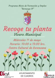 El ayto de Cuadros pone en marcha la 6ª edicion del programa mixto de formación y empleo "Bernesga VI", donde mañana 11 de mayo, cada vecino podra pasar en horario de mañana de 10:00 a 13:00  a recoger su planta del vivero municipal en el Centro Cultural de Lorenzana, Una bonita iniciativa en colaboración con el Servivio públio de empleo de la Comunidad.