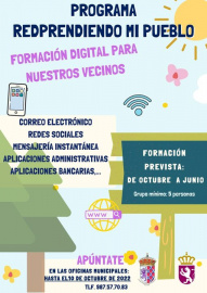 Vuelve el Programa RedPrendiendo, el programma gratuito de formación en materia digital y nuevas tecnologías para nuestros vecinos con la aportación  del ayuntamiento de Cuadros y la Diputación de León. Este programa está dirigido a todos los vecinos de todas las edades orientado a las nuevas tecnologías y sus aplicaciones, el uso y desarrollo de las funciones del correo electrónico, redes sociales, aplicaciones bancarias y administrativas entre otras muchas actividades. La formación será impartida entre los meses de octubre a junio de 2023 con un grupo mínimo de 5 personas. Todo vecino interesado podrá aporntarse hasta el proximo 10 de octubre en las oficinas municpales del ayuntamiento de Cuadros.