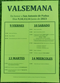 Era el monumento y había ganas de volver a un ambiente festivo y jovial. Valsemana reunirá todos los ingredientes necesarios para ello desde el viernes 9 de junio, día en el que arrancarán las fiestas desde las 19:00. Sin nada que dejar en el tintero la fiesta continuará a las 22:30 con discoteca móvil y para reponer energías a las 00:00 habrá chocolatada para todos los asistentes. El sábado día 10 llega el plato fuerte, madrugando con un pasacalle desde las 10:30 de la mañana para dar los buenos días a todos los vecinos. A las 13:00 la discoteca móvil y baile vermut irán abriendo apetito entre los asistentes para que a las 14:30 disfruten de la ya tradicional comida de “pollo asado” con patatas pimiento. Por un precio de 7€ en que también se incluye pan, bebida y café podrán apuntarse todo el que lo desee en los numero de tlf que figuran en el cartel hasta el próximo 8 de junio. A las 17:30 el también tradicional Campeonato de tute será el protagonista, con premios para las 3 mejores parejas. Los más pequeños también tendrán su espacio desde las 18:30 con juegos infantiles y a partir de las 23:00 el ritmo y la música corre a cuenta del Duo Samba. Después de unos días de margen el martes 1e se celebrará una Santa misa y procesión en honor a San Antonio de Padua. A continuación, habrá baile y vermut con Los Riberanos y a las 18:00 la Agrupación Cambur Pintón hará una actuación musical. Para despedir la festividad de San Antonio, el miércoles 14 se celebrará una solemne misa en honor a todos los difuntos. Valsemana ha puesto todo de su parte para que estas fiestas sigan siendo un espacio de ocio y diversión entre todos y para todos los vecinos de la pedanía, como cada año. Para su organización han colaborado tanto la Junta Vecinal de Valsemana como el Ayuntamiento de Cuadros