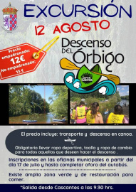 El próximo 12 de agosto los vecinos del municipio podrán disfrutar de la excursión que organiza el ayuntamiento para realizar el Descenso del Orbigo. El descenso del río Órbigo en Canoa es una actividad realizada por la empresa Difereventos. Se trata de un descenso en canoa que tiene la salida en Veguellina de Órbigo. El final de la actividad se encuentra en Villamediana de la Vega. En mitad del descenso, aproximadamente, se realizará una parada intermedia en Villoria de Órbigo. La duración de la actividad dependerá de la pericia del grupo, pero normalmente empleamos una 1hora y 15 minutos hasta llegar a Villoria donde hacemos una parada intermedia en la playa fluvial. Después de la parada haremos el segundo tramo que será de otra 1hora y 15 minutos, por lo tanto, más o menos 2 horas y media de descenso más la parada intermedia. Se puede hacer desde los 5 años hasta los 70 y el precio es para todos el mismo, aunque en el caso de los niños, es obligatorio que vayan siempre acompañados por un adulto responsable. Se debe llevar ropa que se pueda mojar y ropa para cambiarse, siendo recomendable el uso de crema solar y evitar dentro de lo posible las chanclas de dedo (mejores cangrejeras, chanclas cerradas o deportivas viejas incluso). Se recomienda estar 10 minutos antes de la hora que se haya reservado. La organización dará un pequeño bidón estanco si se desea, para poder meter en su interior el móvil (aunque no es muy recomendable), gafas e incluso algo de dinero si se va a hacer uso del bar de la playa fluvial de Villoria en la parada intermedia. El precio será de 12€ para empadronados y de 15€ para no empadronados e incluye transporte y descenso en canoa. Las inscripciones darán comienzo desde el 17 de julio hasta completar el aforo del autobús.