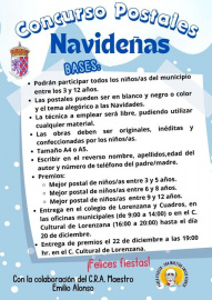 ¿Qué mejor manera que empezar la bienvenida a la Navidad con el 1er concurso infantil de postales navideñas? Eso es lo que habrán pensando los vecinos de la pedanía de Campo y Santibáñez, que acoge esta segunda edición con regalos para todos los participantes y un premio para cada categorías y sorpresa para todos los niños. Categorías • 2 a 5 años • 6 a 8 años • 9 a 12 años Se podrán entregar las postales hasta el día 20 de Diciembre en los colegios de Lorenzana y Cuadros, en las oficinas municipales en horario de mañana y en el Centro Cultural de Lorenzana. La entrega de premios será el 22 de diciembre a partir de las 19:00 en el Centro Cultural de Lorenzana.