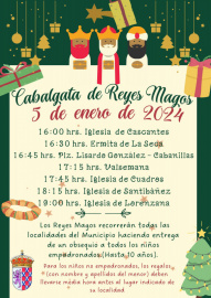 En el corazón de la temporada festiva en el municpio se llena de alegría y magia con una emocionante agenda de eventos navideños. Desde la esperada Cabalgata de Reyes hasta fascinantes talleres infantiles, el pueblo ofrece una experiencia única para celebrar estas fechas especiales. El Cartero Real: 3 y 4 de enero en Santibañez y La Seca respectivamente.  La anticipación comienza con "El Cartero Real", un evento encantador que invita a los niños a entregar personalmente sus cartas a los Reyes Magos. El pueblo se ilumina con la emoción de los pequeños, quienes comparten sus sueños y deseos para la temporada. Taller Infantil de Magia, Astronomía y Ciencia: 4 de enero El 4 de enero, los jóvenes exploradores tienen la oportunidad de participar en un taller único celbrado en La Seca, que combina magia, astronomía y ciencia. Guiados por expertos, los niños descubren el asombroso mundo de la magia y la fascinación del cosmos y la ciencia. Cabalgata de Reyes: 5 de enero La culminación de la celebración llega con la impresionante Cabalgata de Reyes el 5 de enero. Los Reyes Magos, acompañados de sus séquitos, desfilan por las calles del municpio de Cuadros, repartiendo alegría y regalos. La comunidad se une para dar la bienvenida a Sus Majestades y disfrutar de la magia de este evento tradicional. La Cabalgata de Reyes saldrá a las 16.00 horas de Cascantes, y pasará a las 16.30 por La Seca, a las 16.40 por Cabanillas, 17.15 en Valsemana, 17.45 en Cuadros, 18.15 horas en Santibáñez y a las 19.00 en Lorenzana.   En el municpio de Cuadros la Navidad no solo es una época de regalos, sino también de experiencias inolvidables. La agenda navideña repleta de eventos especiales crea recuerdos mágicos para todas las edades, convirtiendo esta temporada en un momento verdaderamente especial.