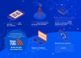 La tecnología prestada sobre estas bandas de frecuencia, anteriormente utilizada por la Televisión Digital Terrestre (TDT), permite ofrecer una mejor cobertura en interiores y la mayor extensión de cobertura posible. Estas redes llegan para mejorar la velocidad de conexión a internet, servicios de televisión, video y música bajo demanda, así como decenas de nuevos servicios que verán la luz en los próximos años para aprovechar el gran potencial de la tecnología. La prestación de los servicios móviles en estas bandas de frecuencia puede conllevar la aparición de determinadas afectaciones en la recepción de la señal de TDT de los usuarios del municipio, debido a que se utilizaban anteriormente para el servicio de televisión.  Para solventar dichas afectaciones, en caso de llegar a producirse, los operadores móviles han confiado en la empresa #llega700, para resolver cualquier tipo de afectación que pueda producirse a cualquier usuario de TDT y en cualquier punto del territorio nacional que se vea afectado por este motivo. Con tal fin, se ha habilitado un teléfono de atención gratuito al que pueden recurrir todos los usuarios que necesiten solicitar la actuación en sus instalaciones para la solución de las afectaciones y, de este modo, que pueda restablecerse el servicio TDT con total normalidad. A estos efectos, les informamos que el número de atención gratuito para los ciudadanos es el siguiente: 900 833 999, y la página web con toda la información al respecto es: www.llega700.es.