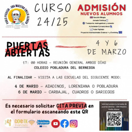 El Colegio Rural Agrupado Maestro Emilio Alonso se complace en anunciar el inicio del proceso de admisión para el próximo curso escolar 2024/2025. Con el objetivo de brindar una educación de calidad y cercana a la comunidad, invitamos a todas las familias interesadas a participar en nuestras jornadas de puertas abiertas y reuniones informativas. Jornadas de Puertas Abiertas y Reuniones Informativas: Las jornadas de puertas abiertas se llevarán a cabo los días 4 y 6 de marzo a las 17:00 horas en el colegio ubicado en Pobladura. Durante estas reuniones, se proporcionará información detallada sobre el proyecto educativo del colegio, sus instalaciones, metodologías de enseñanza, actividades extracurriculares y todo lo relacionado con el proceso de admisión. Al finalizar la reunión del día 4 de marzo, se organizará una visita a las escuelas de Azadinos, Lorenzana o Pobladura, según la elección de los participantes. Asimismo, el día 6 de marzo se realizará una visita a las escuelas de Acarbajal, Cuadros o Sariegos, también al término de la reunión. Solicitud de Cita Previa: Es importante destacar que para garantizar una atención personalizada y evitar aglomeraciones, es necesario solicitar cita previa para asistir a las jornadas de puertas abiertas y reuniones informativas. Las citas pueden solicitarse a través de nuestra página web oficial o contactando directamente con la administración del colegio. En el Colegio Rural Agrupado Maestro Emilio Alonso, nos comprometemos a ofrecer una educación integral y de calidad, adaptada a las necesidades y características de cada alumno. Invitamos a todas las familias interesadas a participar en nuestras jornadas de puertas abiertas y reuniones informativas para conocer de cerca nuestra propuesta educativa y formar parte de nuestra comunidad escolar.