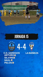 En un emocionante duelo este fin de semana, C.D. Sariegos y La Bañeza F.C. protagonizaron un partido de muchos goles que culminó en un vibrante empate 4-4. El estadio fue testigo de un choque cargado de acción y giros inesperados que mantuvo a los aficionados al filo de sus asientos. Primera mitad: Dominio de La Bañeza La primera mitad del encuentro fue un auténtico vendaval para La Bañeza F.C., quienes dominaron el terreno de juego y no dieron tregua al equipo local. Al minuto 45, La Bañeza se encontraba con una ventaja sólida de 0-3, dejando a un C.D. Sariegos sin fútbol y perdido en el campo. Reacción del Sariegos: Un vistazo a la profesión El inicio de la segunda mitad mostró un C.D. Sariegos decidido a dar pelea. En el minuto 48, Arturo recortó distancias con el 1-3, dando una chispa de esperanza a su equipo. Sin embargo, La Bañeza, implacable, volvió a ampliar su ventaja al 51', colocando un 1-4 que parecía definitivo. El milagro del Sariegos: Una remontada épica La verdadera emoción comenzó en el minuto 72, cuando Sergio marcó el 2-4. Este gol encendió la chispa que necesitaba el Sariegos para iniciar una espectacular remontada. Saúl, al minuto 89 de penalti, logró el 3-4, y justo cuando parecía que el tiempo se agotaba, Adrián, al minuto 90, selló el empate definitivo 4-4, desatando la euforia de la marea celeste en las gradas. Un partido sin incidentes, pero con tensión A pesar de la alta competitividad, el partido se desarrolló sin mayores incidentes, aunque La Bañeza terminó el encuentro con dos tarjetas rojas. Este empate mantiene al C.D. Sariegos en la tercera posición de la tabla, ya enfocados en su próximo desafío contra el C.D. Villa de Simancas. Sin duda, fue un partido para recordar, donde el C.D. Sariegos demostró una notable capacidad de reacción y profesionalismo para salvar los muebles en los últimos minutos del juego. Ahora, solo queda esperar al próximo enfrentamiento y ver si el Sariegos puede mantener su racha y continuar escalando en la clasificación. ¡El fútbol nunca deja de sorprendernos!